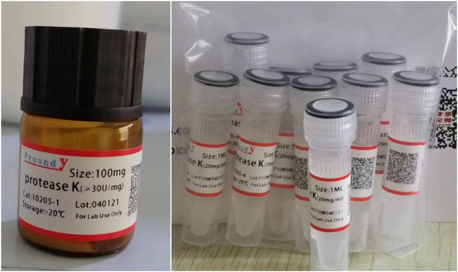 | protease k | 20mg/ml | 液體 | 1ML | 大量現(xiàn)貨,價格電聯(lián)13892843978 |